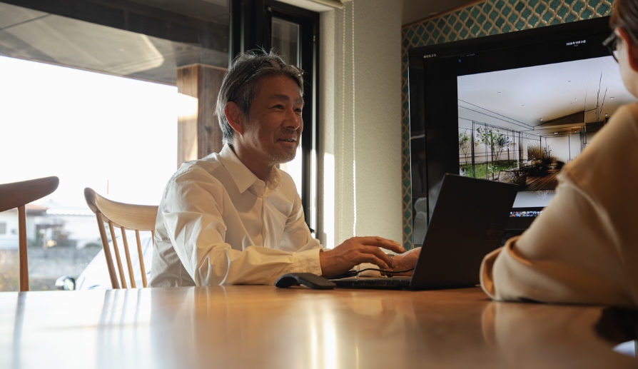 私たちは、最低1年以上前から家づくりの提案を行っています。 『長期優良認定住宅』を全棟取得しており、その申請期間や工事はもとより、 工事期間中の現場を確認しながらの打ち合わせなど、多くの時間を必要としているためです。 このスケジュールを用いてお客様に上質な家をお届けするため、 私たちは「年間10棟まで」と決め、お客様・意匠計画・職人・メーカー等、 全員とコミュニケーションがとれる最適な人数で家づくりを行っています。 それをお客様にお伝えしたうえで、 ご納得いただき、安心・安全・快適はもとより、 本物の素材をいかした暮らしをお届けしています。